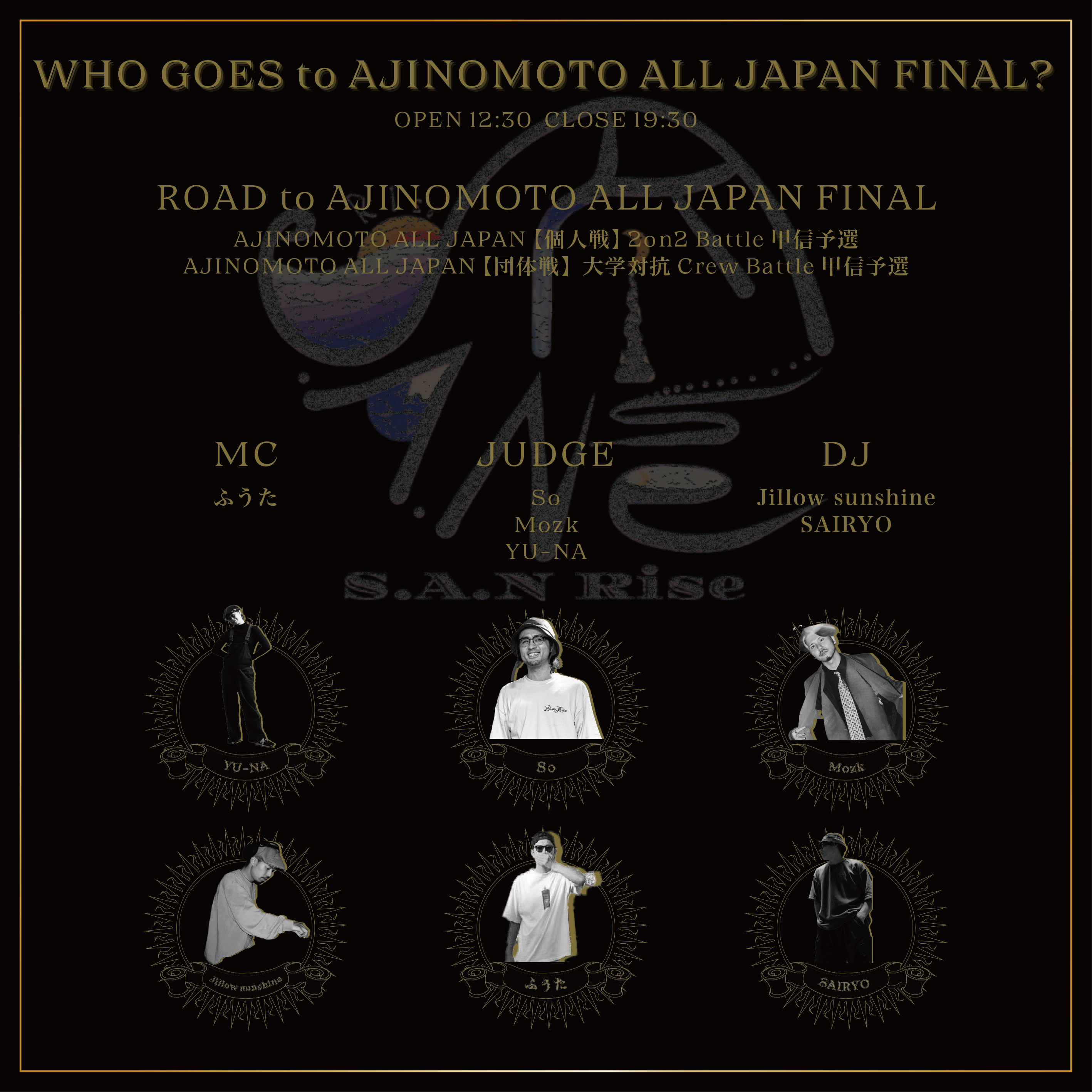 注意事項等 | ・AJINOMOTO ALL JAPANにエントリーおよび参加する際は全日本大学ストリートダンス選手権 イベント参加規程及び、ルールブックを確認いただき、全ての項目に同意いただくこと。