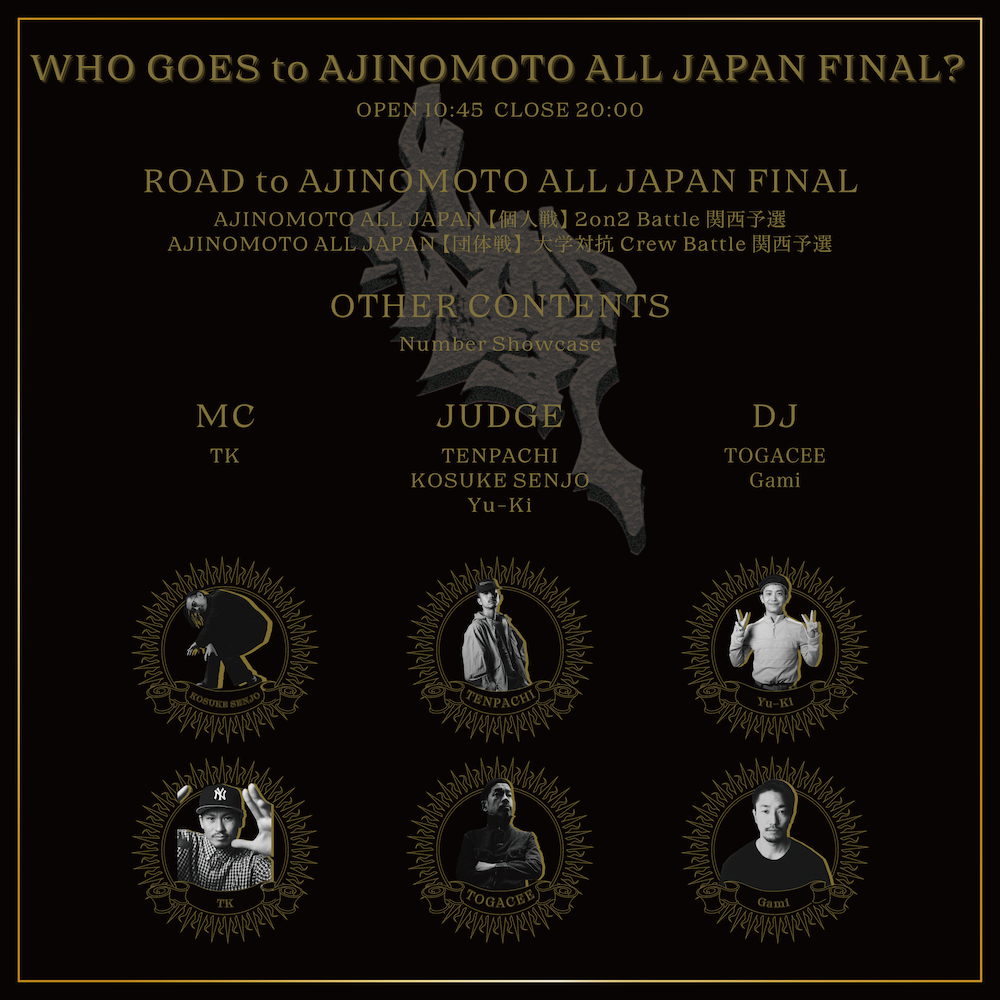 注意事項等 | ・AJINOMOTO ALL JAPANにエントリーおよび参加する際は全日本大学ストリートダンス選手権 イベント参加規程及び、ルールブックを確認いただき、全ての項目に同意いただくこと。