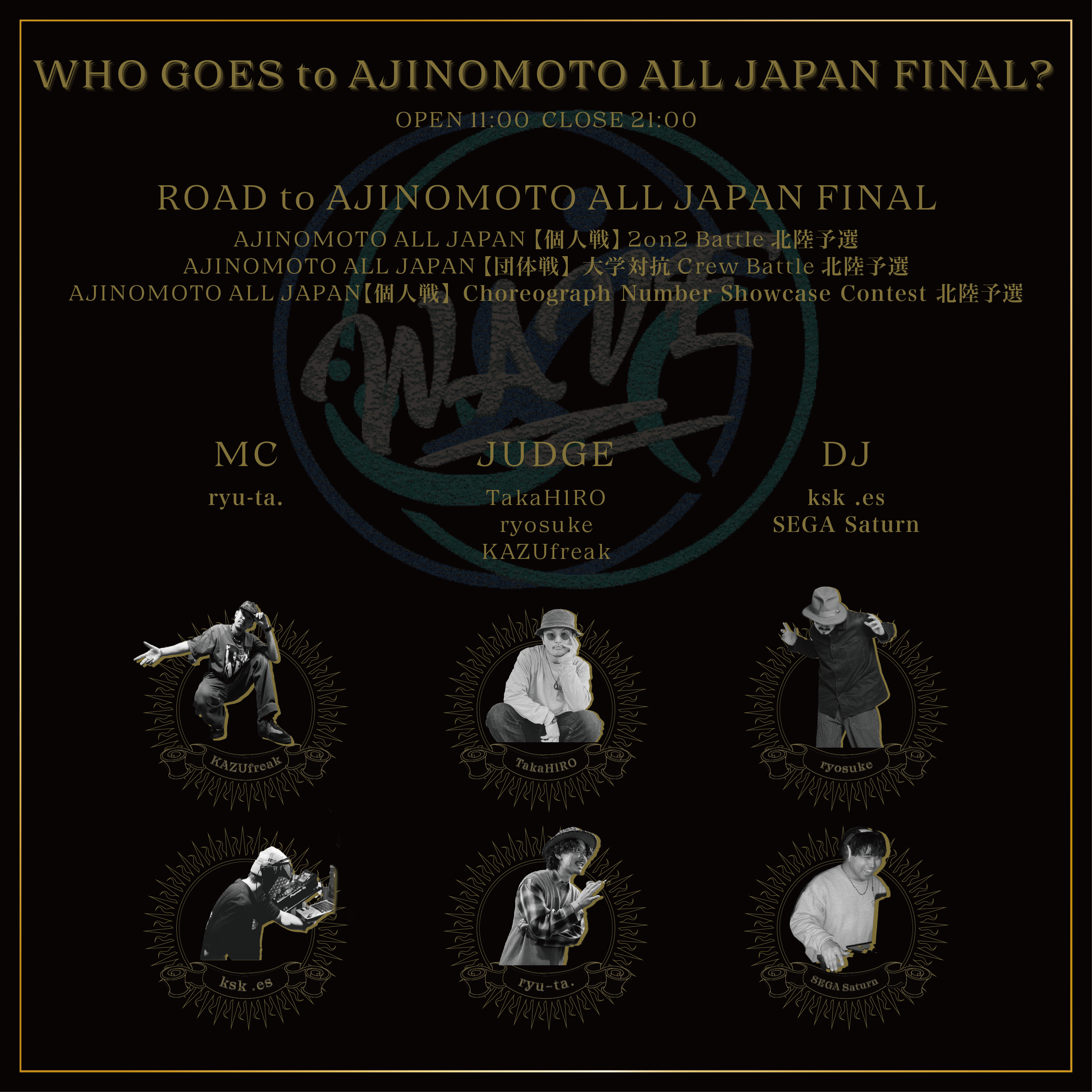 注意事項等 | ・AJINOMOTO ALL JAPANにエントリーおよび参加する際は全日本大学ストリートダンス選手権 イベント参加規程及び、ルールブックを確認いただき、全ての項目に同意いただくこと。